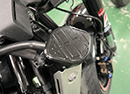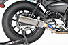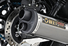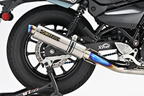 The exhaust pipe is made of Titanium, and the silencers come in two colors: clear titanium and metal black.