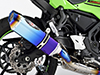 The exhaust pipe is made of Titanium, and the silencer is made of Clear Titanium, Blue Titanium, and Metal Black.
