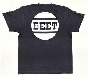 色はアイボリー、黒の2色に、BEETロゴ及び丸マークをそれぞれ印刷したTシャツです。